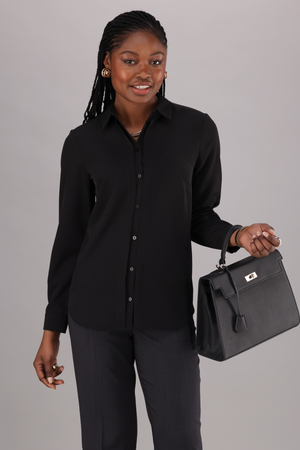 The classic buttoned , long sleeve blouse is the perfect easy care office blouse for everyday wear. Its timeless design and buttoned detailing make it a versatile addition to any professional wardrobe. Featuring a fitted fit, offers both style and comfort.