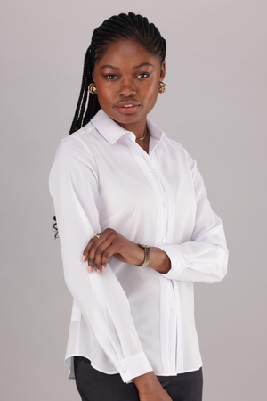 The classic buttoned , long sleeve blouse is the perfect easy care office blouse for everyday wear. Its timeless design and buttoned detailing make it a versatile addition to any professional wardrobe. Featuring a fitted fit, offers both style and comfort.
